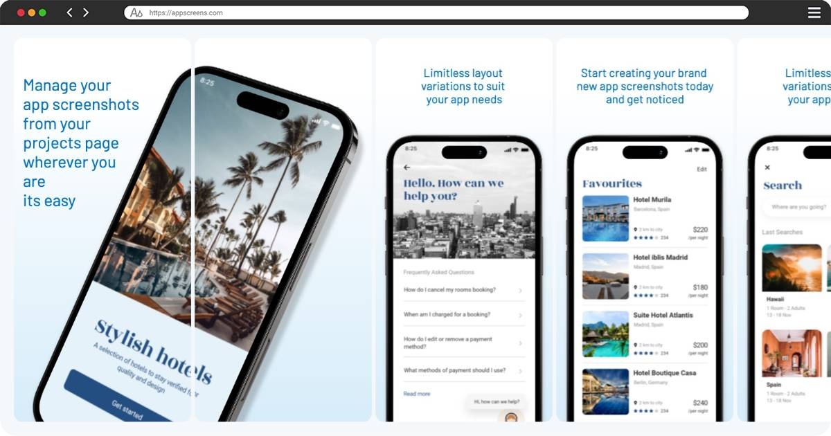 This template simplifies creating professional app store screenshots, eliminating slow, manual processes involved with Photoshop (.psd), Sketch, or cluttered Figma templates. Our fully automated screenshot generator meets all Apple App Store and Google Play requirements, effortlessly providing optimized app store images. Quickly handle multiple devices, orientations, layouts, and easily localize your app screenshots into 80 languages. Enhance App Store Optimization (ASO), boost app downloads, and get found on the app stores with AppScreens.