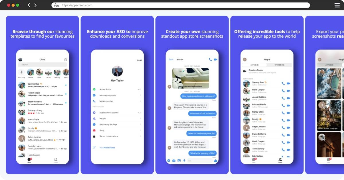 This template simplifies creating professional app store screenshots, eliminating slow, manual processes involved with Photoshop (.psd), Sketch, or cluttered Figma templates. Our fully automated screenshot generator meets all Apple App Store and Google Play requirements, effortlessly providing optimized app store images. Quickly handle multiple devices, orientations, layouts, and easily localize your app screenshots into 80 languages. Enhance App Store Optimization (ASO), boost app downloads, and get found on the app stores with AppScreens.